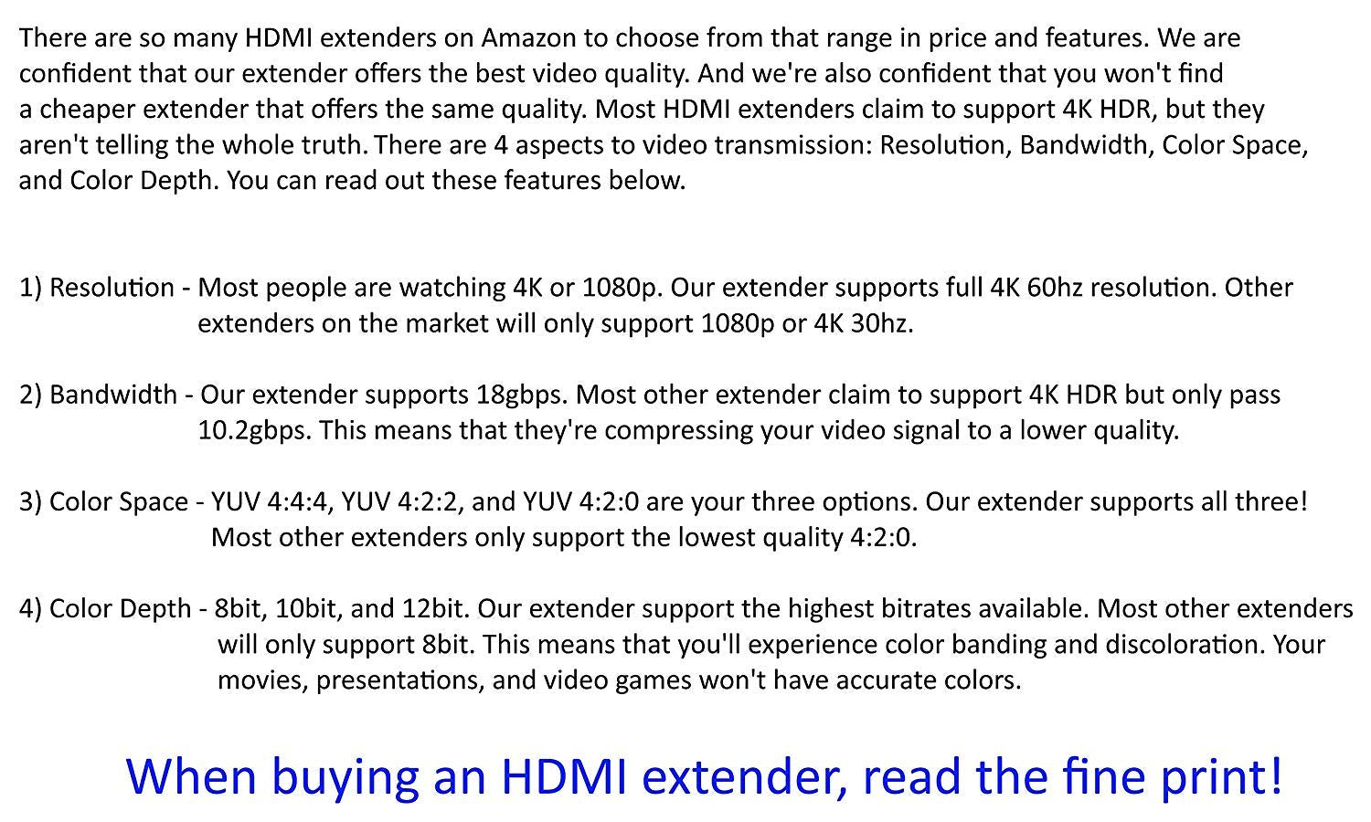 4K HDR HDbaseT Long Range HDMI Extender Kit 330ft 100m ETHERNET 18GBPS Single CAT5e CAT6 CAT7 2.0B 4K @ 60hz UltraHD YUV 4:4:4 Uncompressed Transmitter Receiver IR RS232 HDCP2.2 CONTROL4 Savant