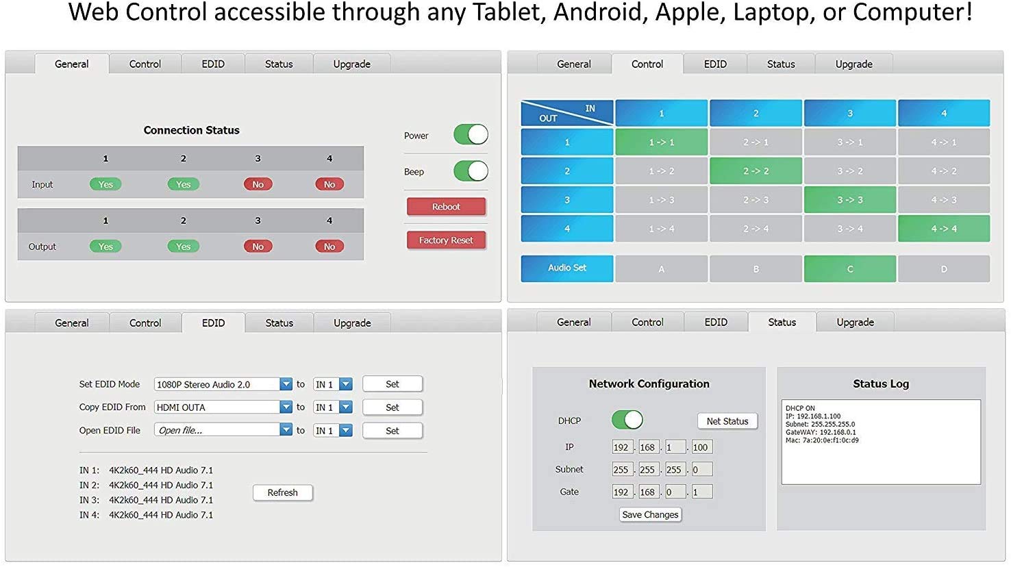 - Web Control with ANY PC, Apple, or Android Device! Includes 8 HDbaseT PoC Receivers (230ft Distance Range) that don't need any additional power