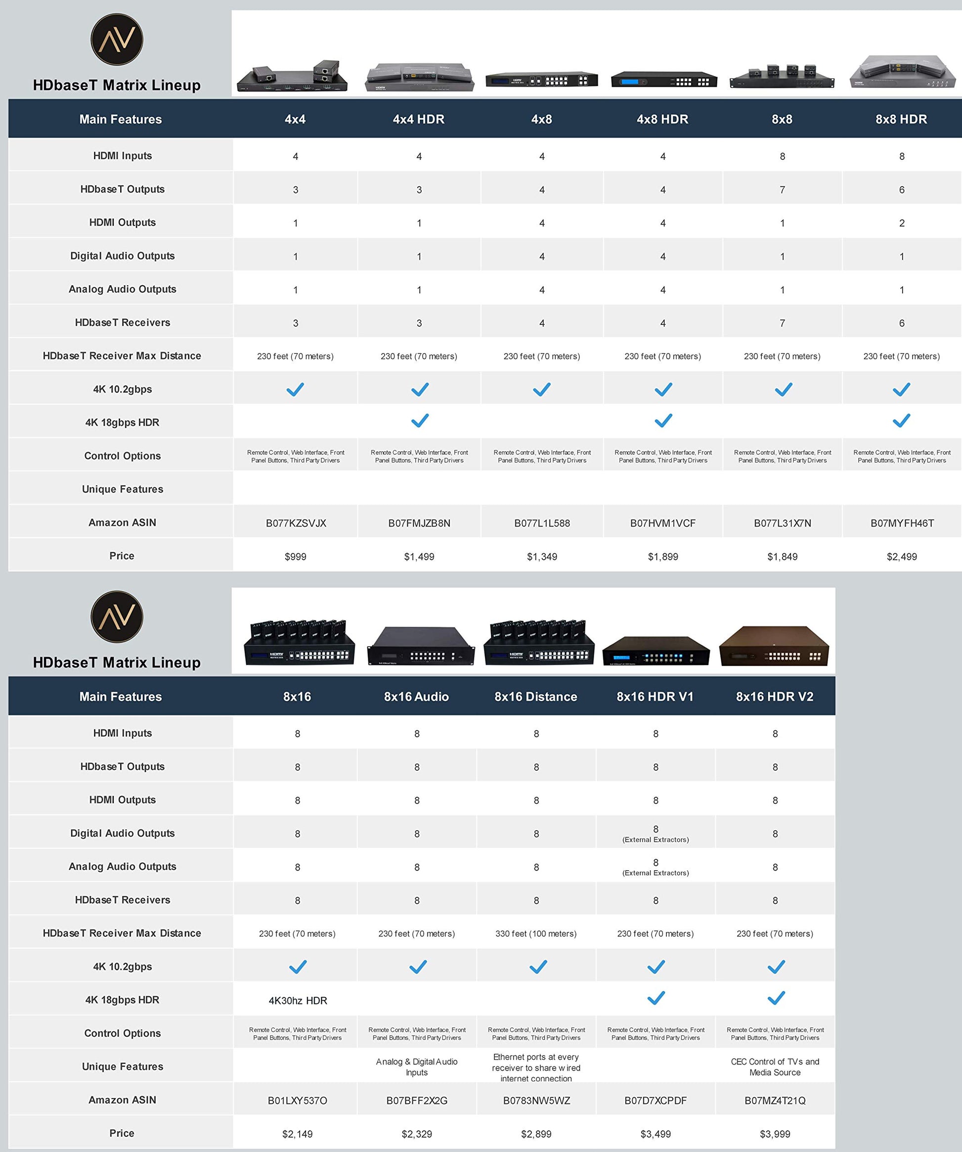 8x16 HDR 18GBPS HDbaseT 4K HDMI Matrix SWITCHER 8 PoC Receivers HDMI 2.0a 2.0 CAT6 CAT5e HDMI HDCP2.2 Routing SPDIF Audio CONTROL4 Savant Home Automation